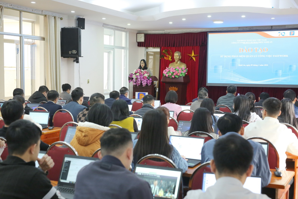 Chiều ngày 09.01.2026, Công ty TNHH MTV Petrolimex Nghệ An đã tổ chức lớp đào tạo sử dụng phần mềm Fastwork cho cán bộ công nhân viên các phòng nghiệp vụ tại Văn phòng Công ty bằng hình thức tập trung trực tuyến do đơn vị cung cấp ứng dụng đào tạo là Công ty TNHH công nghệ Fastwork Việt Nam.